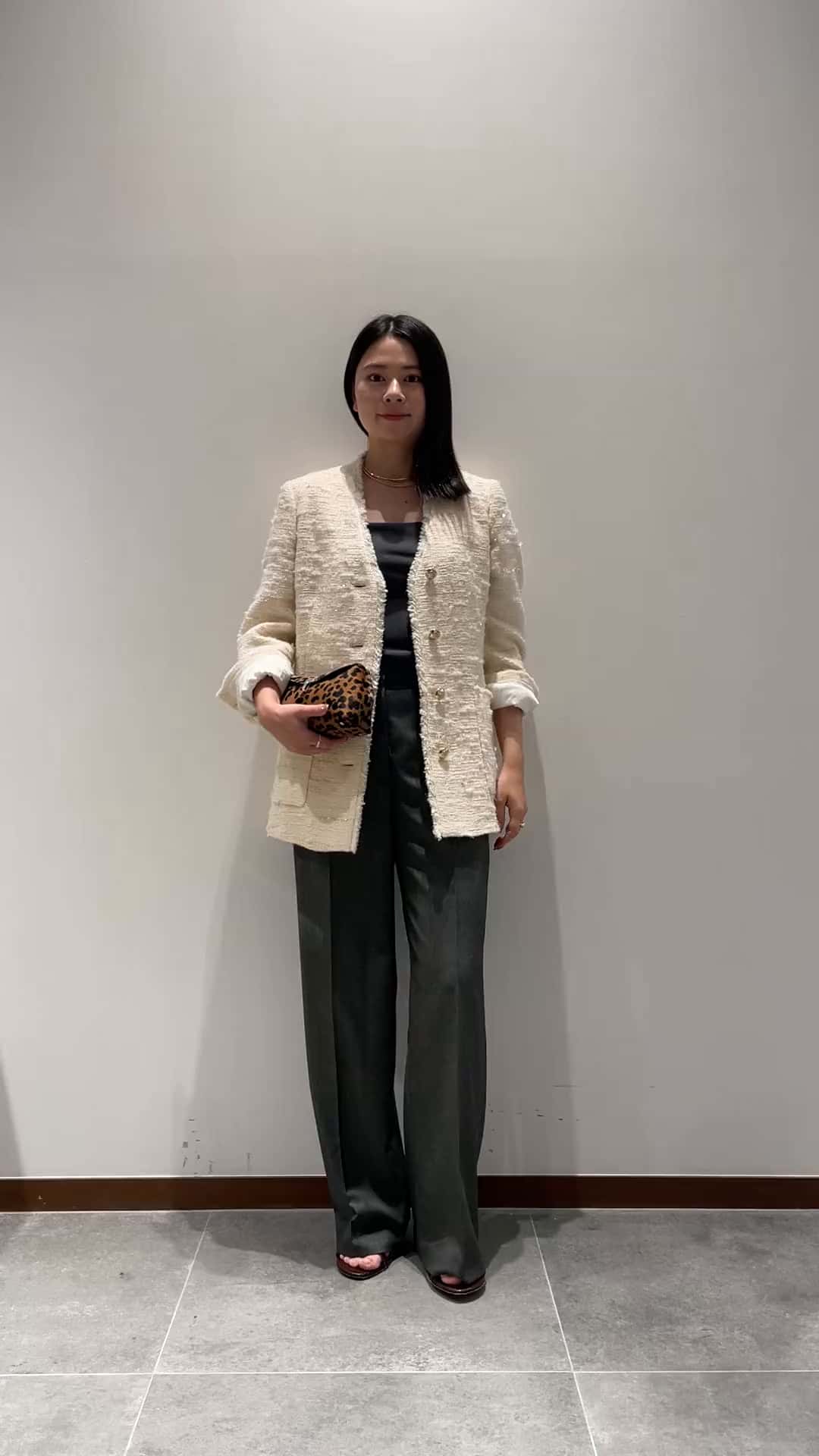 ツイードジャケットを綺麗めに女性らしく合わせたコーデ。