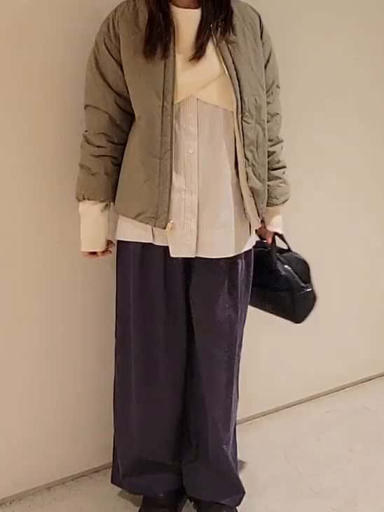 柔らかい生地&ワイドシルエットで穿きやすいです✨パープルみのあるチャコールグレーの色合いも綺麗ですよ♪