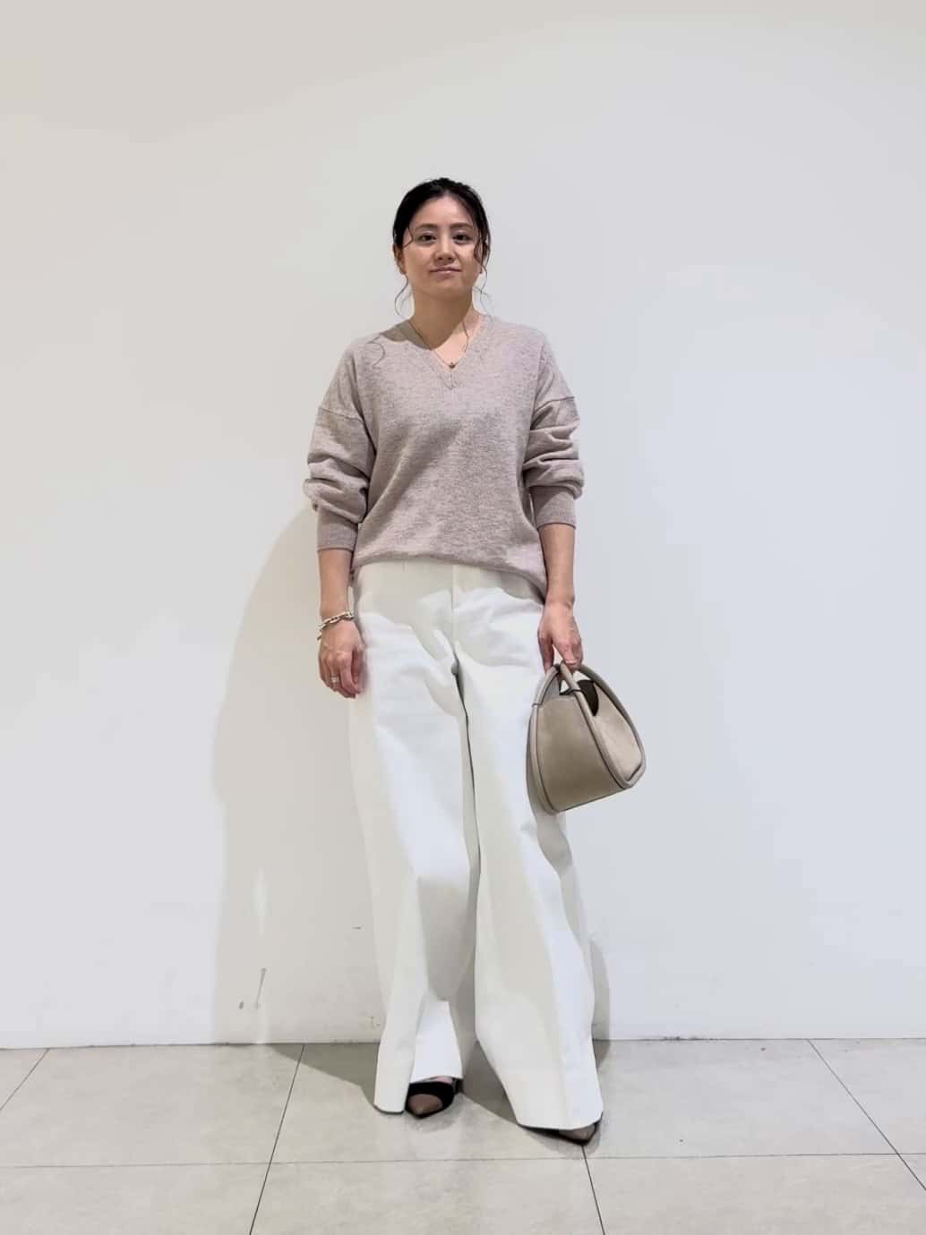 シンプルなデザインなのでボトムスを選ばずに着回しできる万能ニット😍