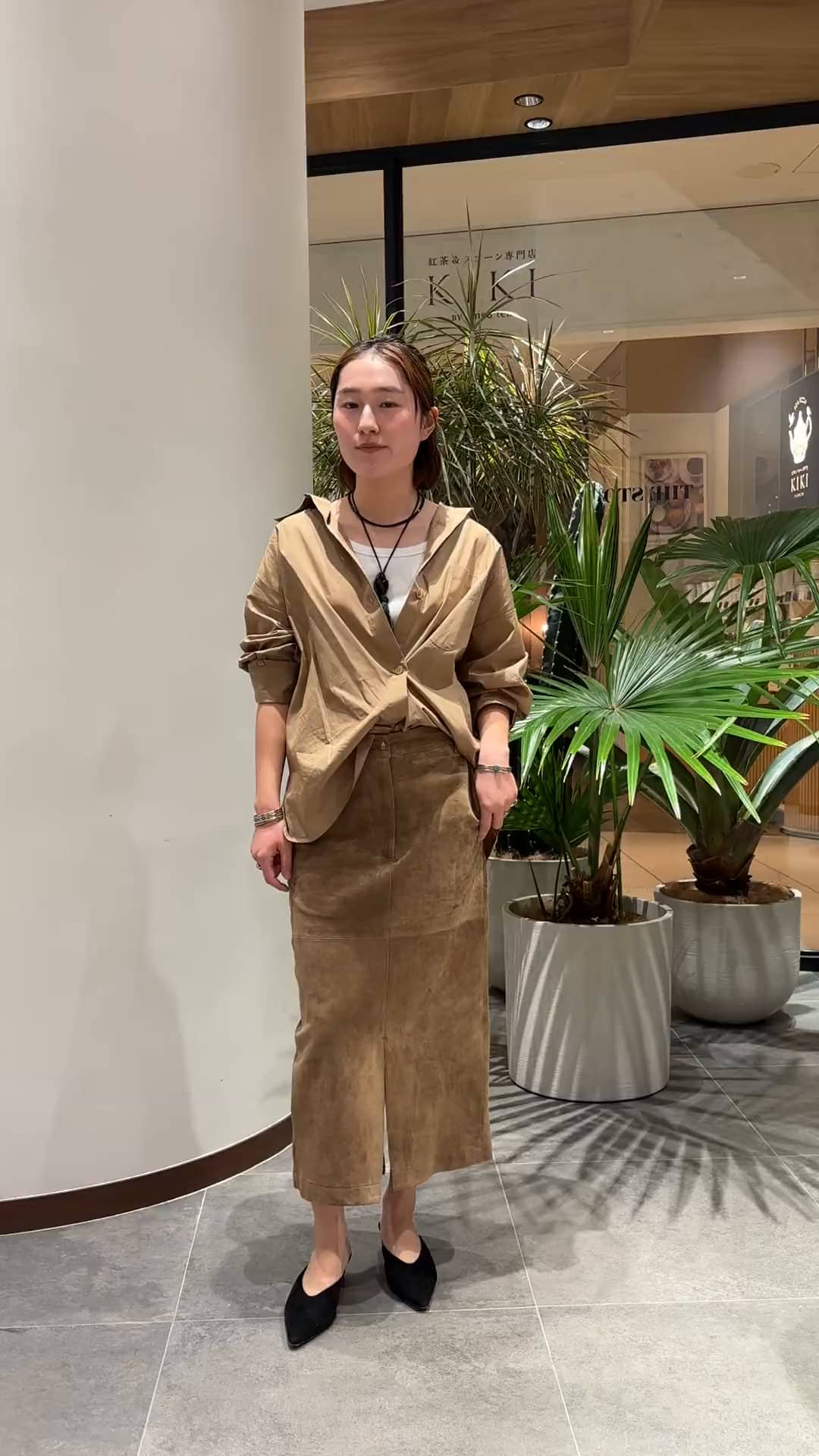 とても柔らかい生地感で、また軽く、スエードながら着心地は抜群です。スリットが膝裏近くまで入っており、足捌きもよく、またモードな印象で履くことができます。