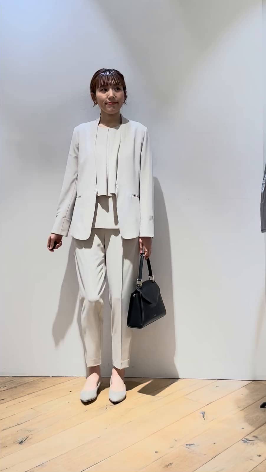 薄手でサラッとした着心地。ややグレーがかった優しい印象のアイボリーです。上下はもちろん、別々にも使っていただけて着回し力抜群です!