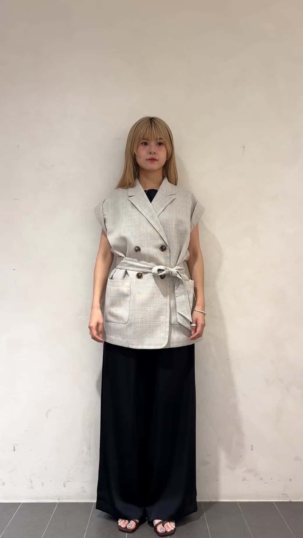 ゆったりとジレ、ベストのイメージで羽織りやすいサイズ感です。