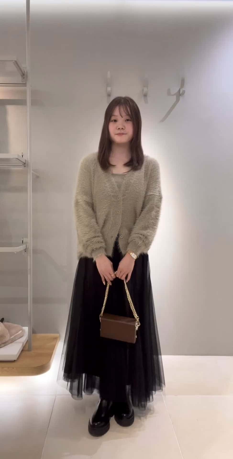 丈感丁度良く、大きく広がりすぎないチュールと少し見えるブラウンがとても綺麗です!