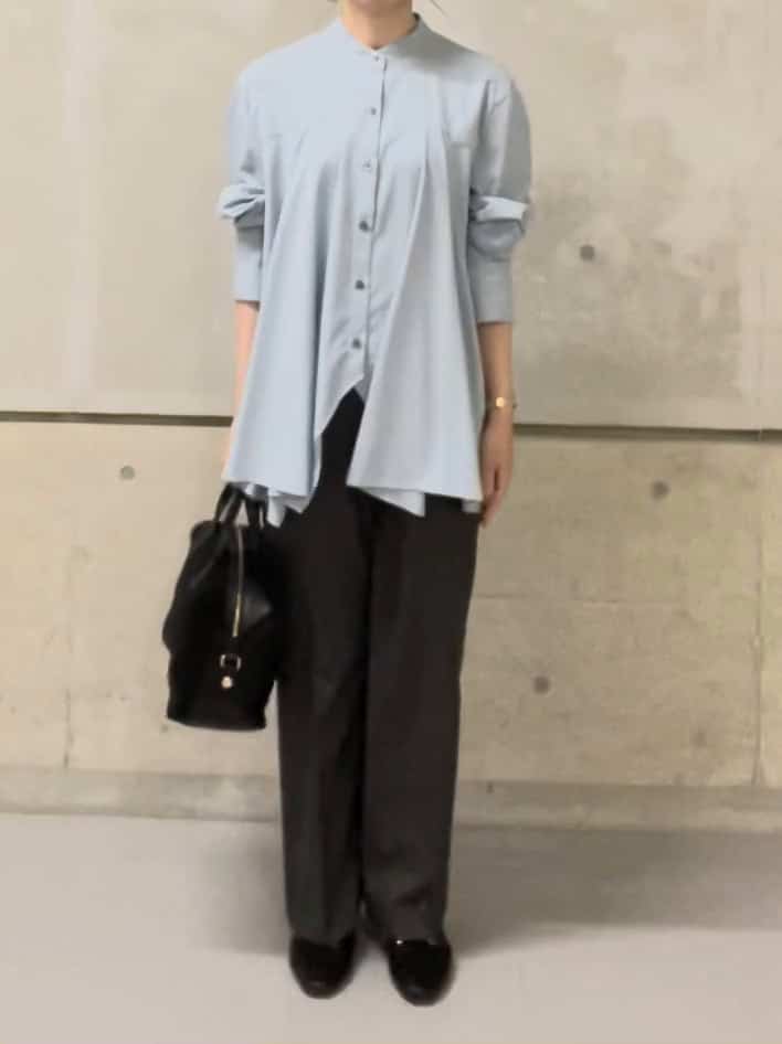 動くたび揺れるデザインで軽さのあるシルエットは一枚でもジレを重ねてもポイントになるアイテム。