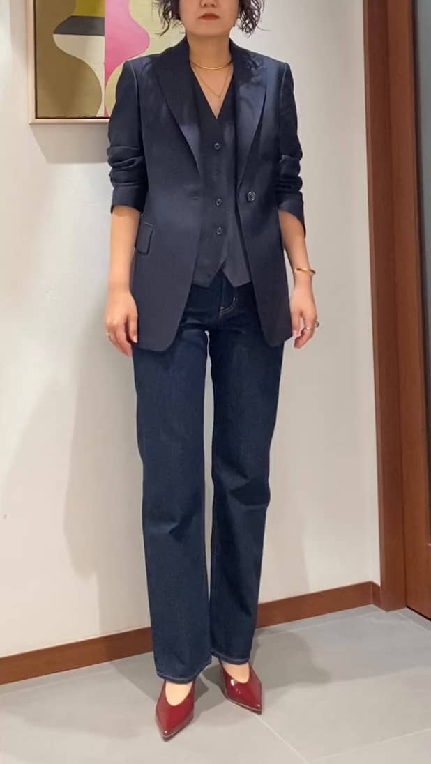 2ピースにデニムを合わせてかっちりしすぎない抜け感を演出してみました。
