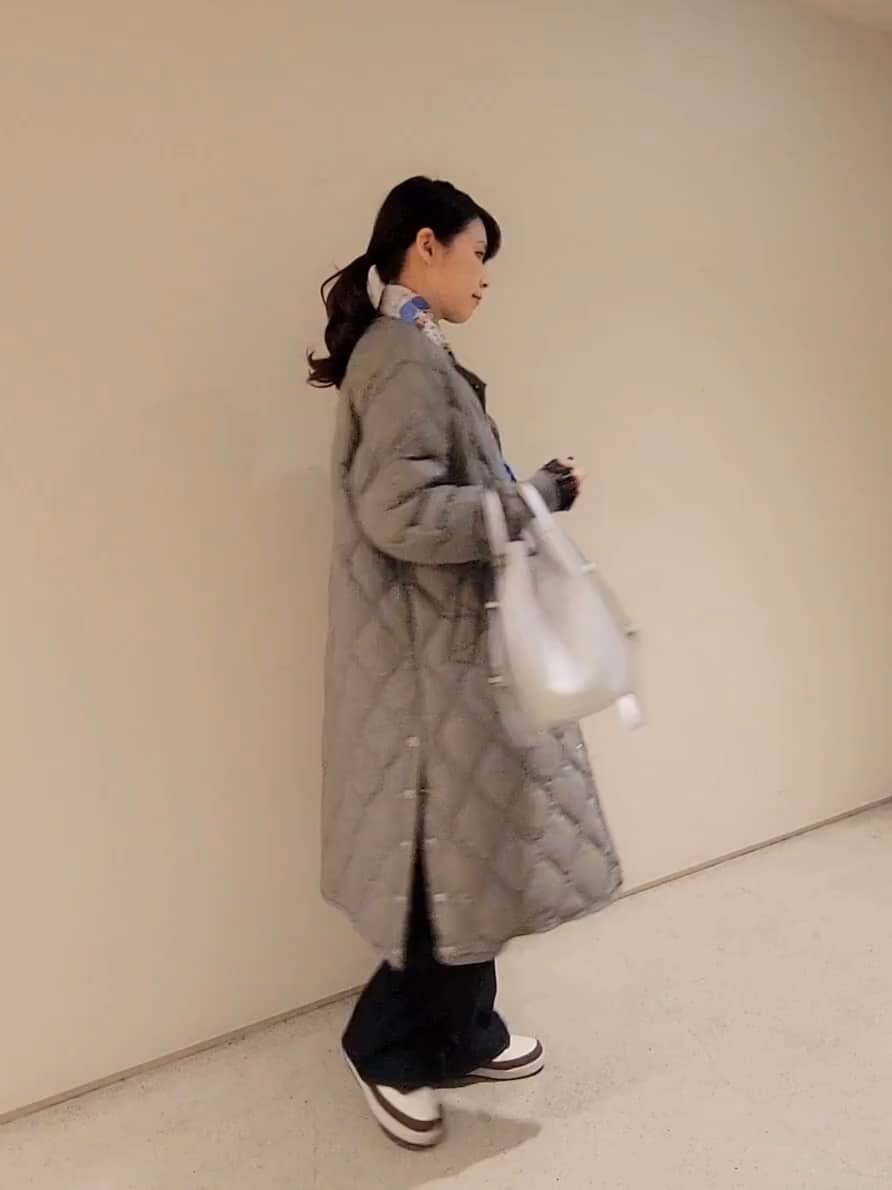 ダウン95%フェザー5%の含有量でかなり軽くて暖かいです✨生地はナイロンなので光沢があり滑らかで気持ちいい質感です♪