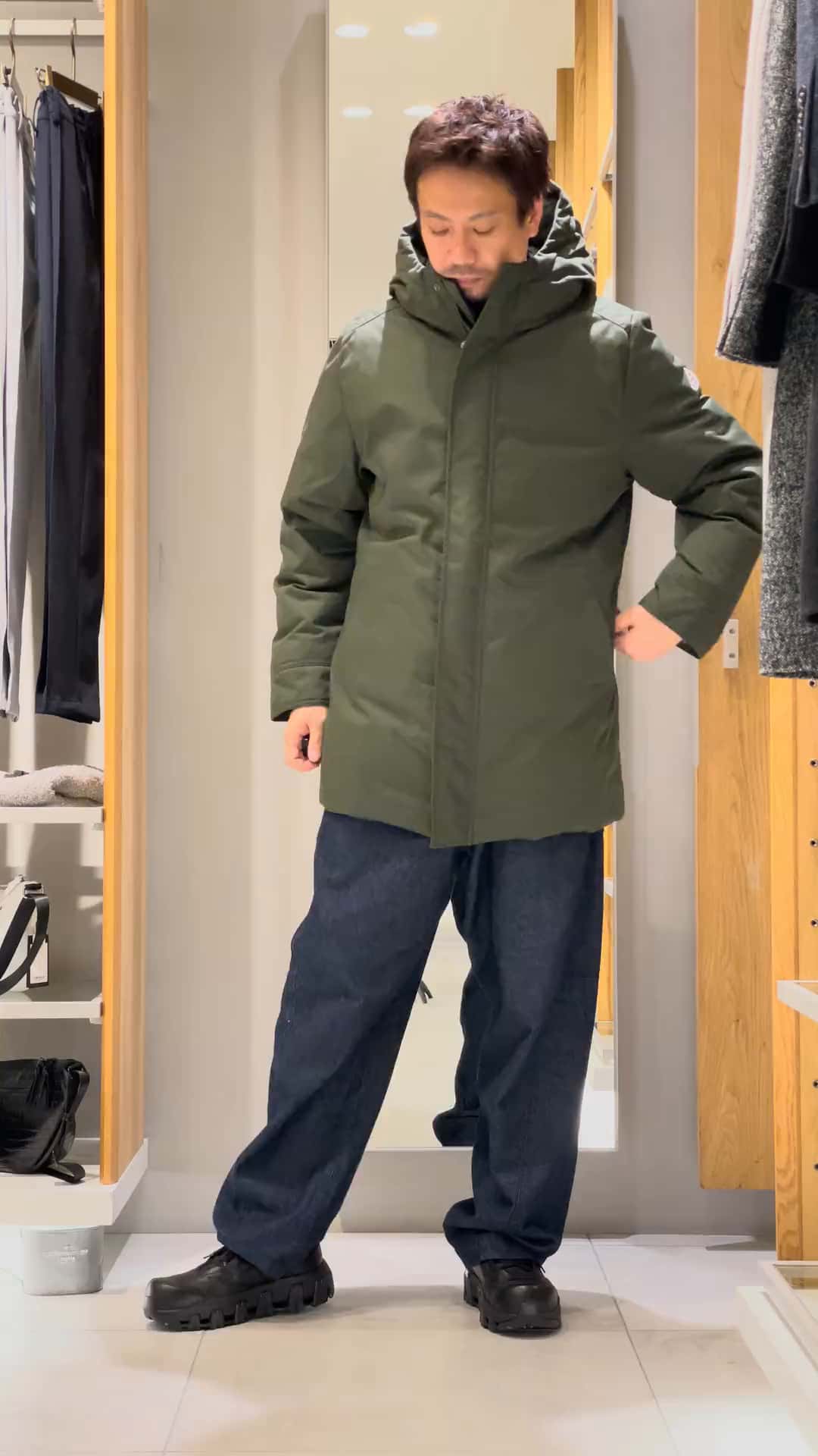 着丈も短すぎないのが特徴で、包み込む保温でインナーは薄着でもOK。
