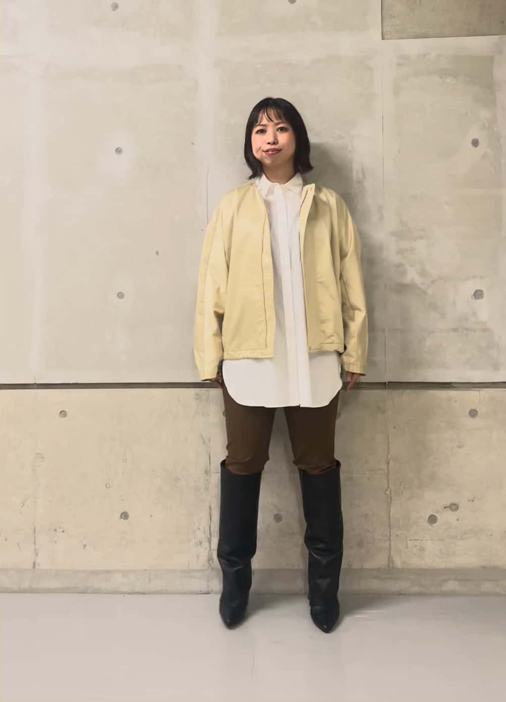 34サイズで、ざっくりニットやボリュームスリーブシャツなどをインに着てもスッキリ着用出来ます!