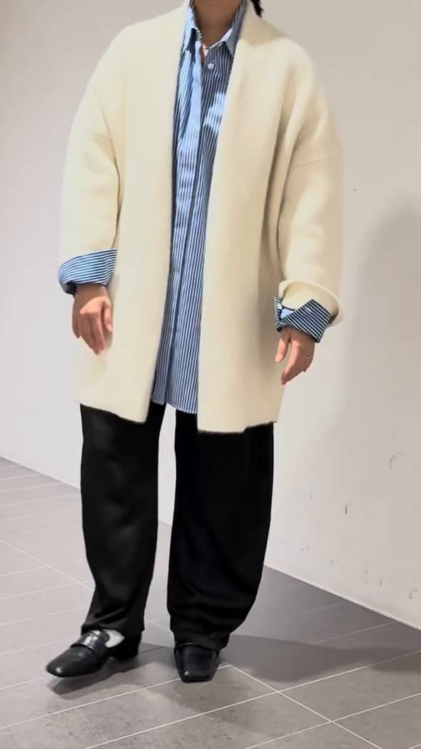 アウターまでいかない気温の時にもぴったりですし、インナーを調整すると冬場も活躍してくれます!ガウンなので綺麗めにもカジュアルにもコーディネートして頂けます❤️