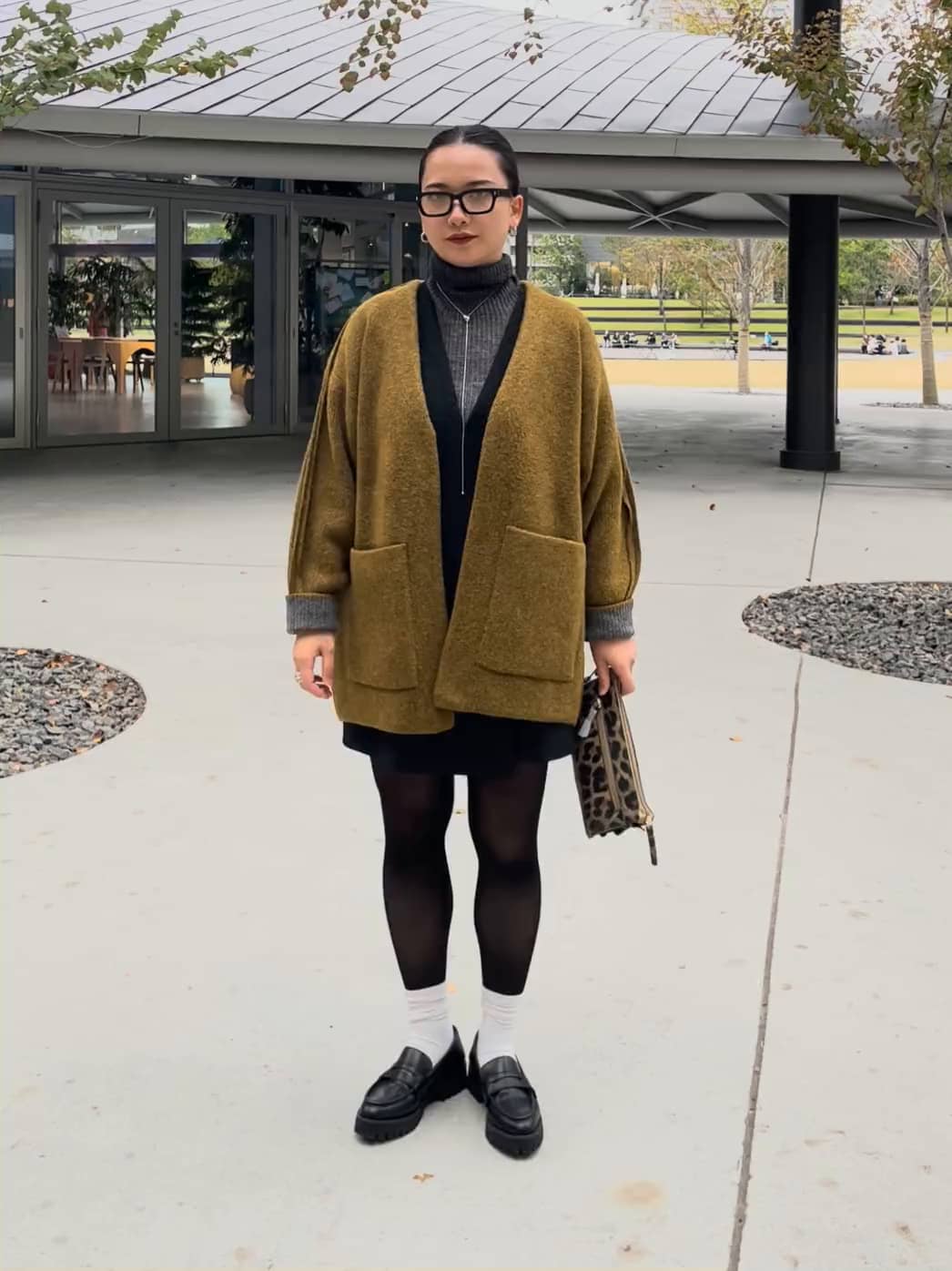 落ち着いたコーデにして