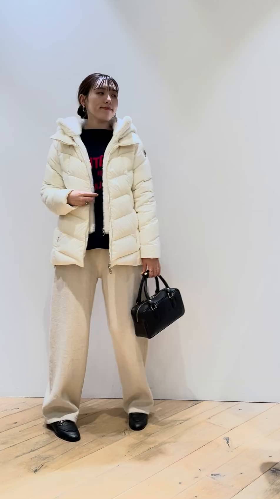 軽くて暖かく抜群の着心地。上品な印象になるホワイトのダウン。真っ白ではなくややクリーム味がかった優しい色合い、マットな生地感なので結構合わせやすいと思います。