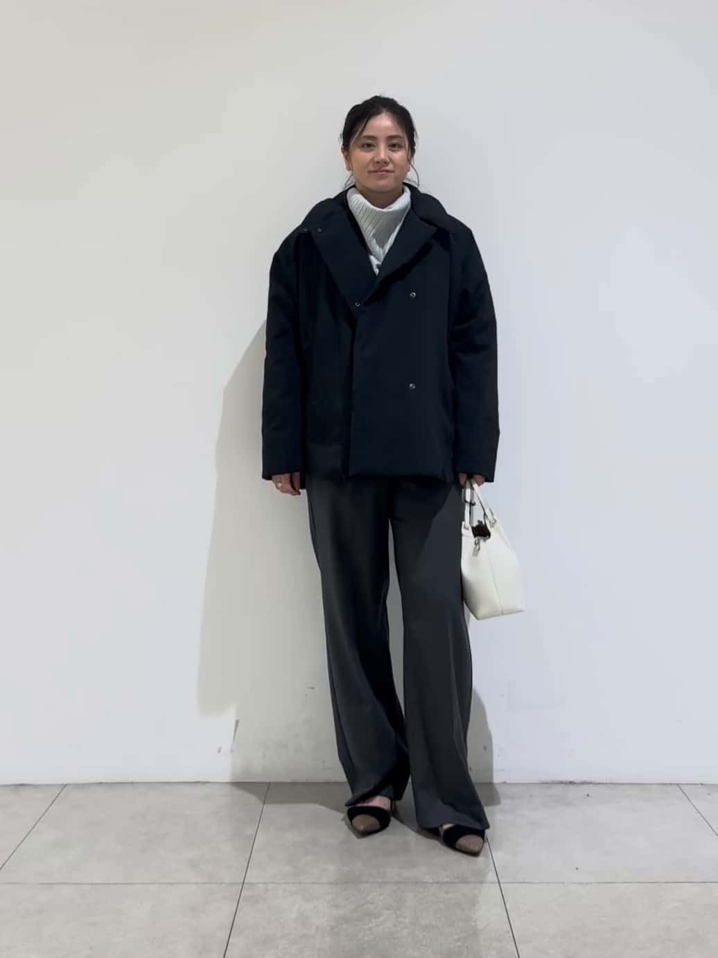 ダウンなのにカジュアルさは見せずにボリュームも抑えめなので、スッキリ見えするのが嬉しいポイント✨✨