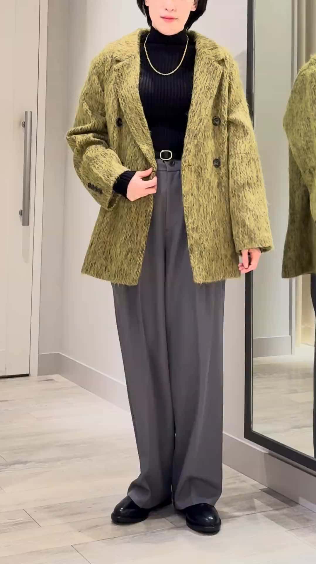 マスタード色の可愛いコートをジェンダーレスな雰囲気でカッコよくてコーディネートしてみました😊✌︎