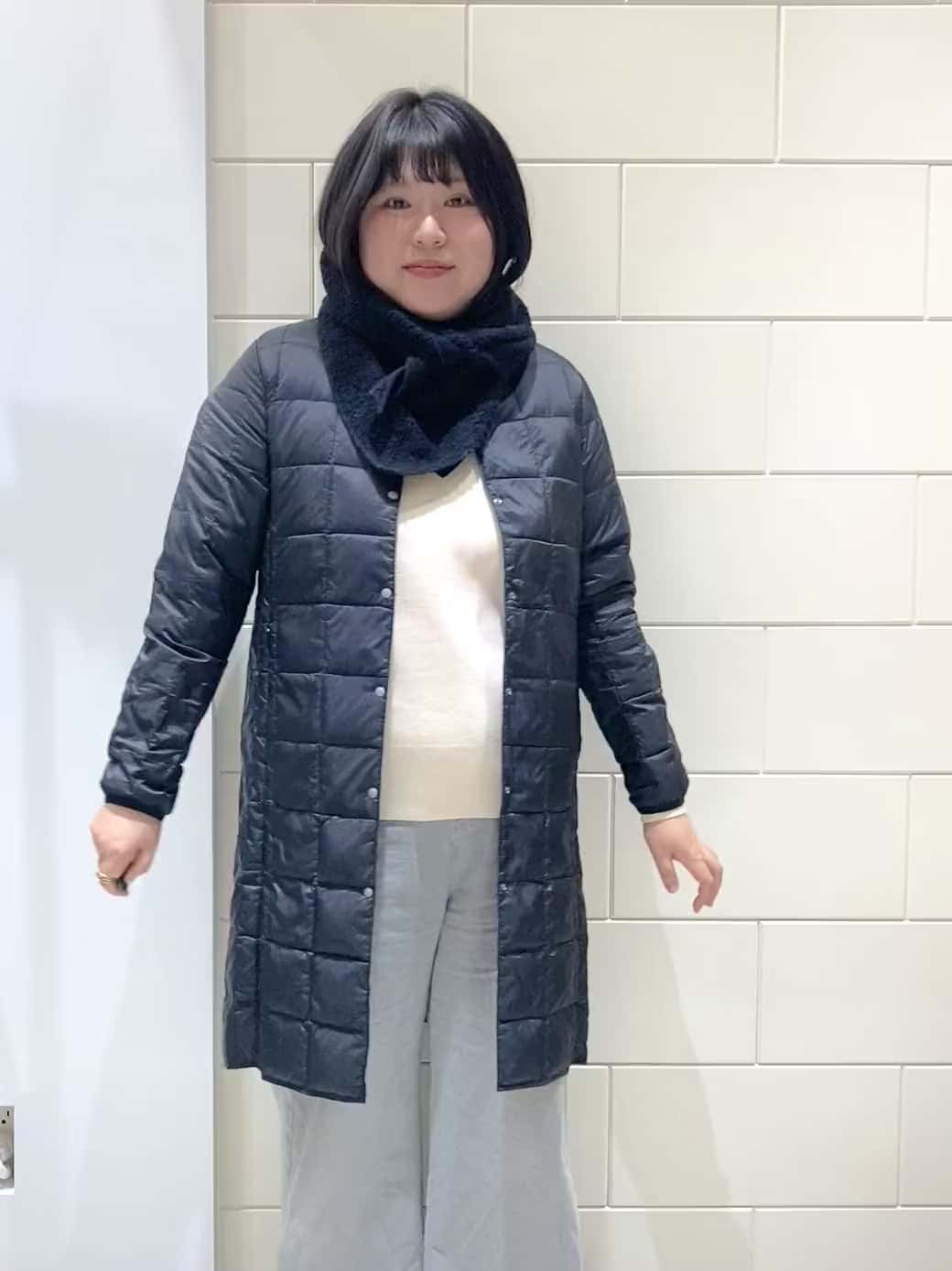 ニットのような三角形ストール。マフラーのように巻くとボリュームも出てかわいく、暖かいです♡マフラーと違って肩かけでも使えるのがいいなと思います✨