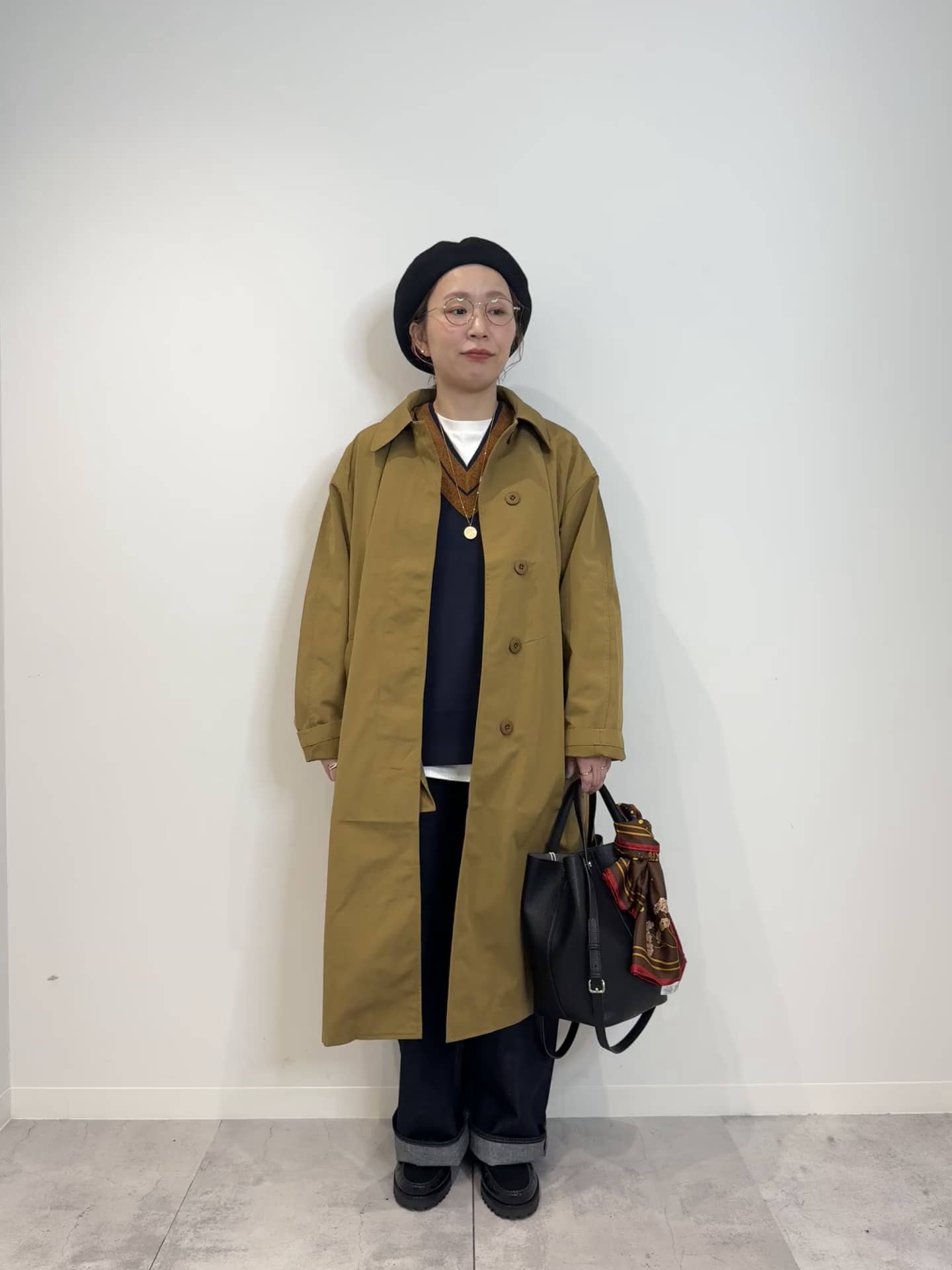バルカラーコートはゆったりしているので肉厚なニットも着込めます。見た目よりとても軽いので着やすいコートです⭕️袖先は私には少し長いので一折しても👍