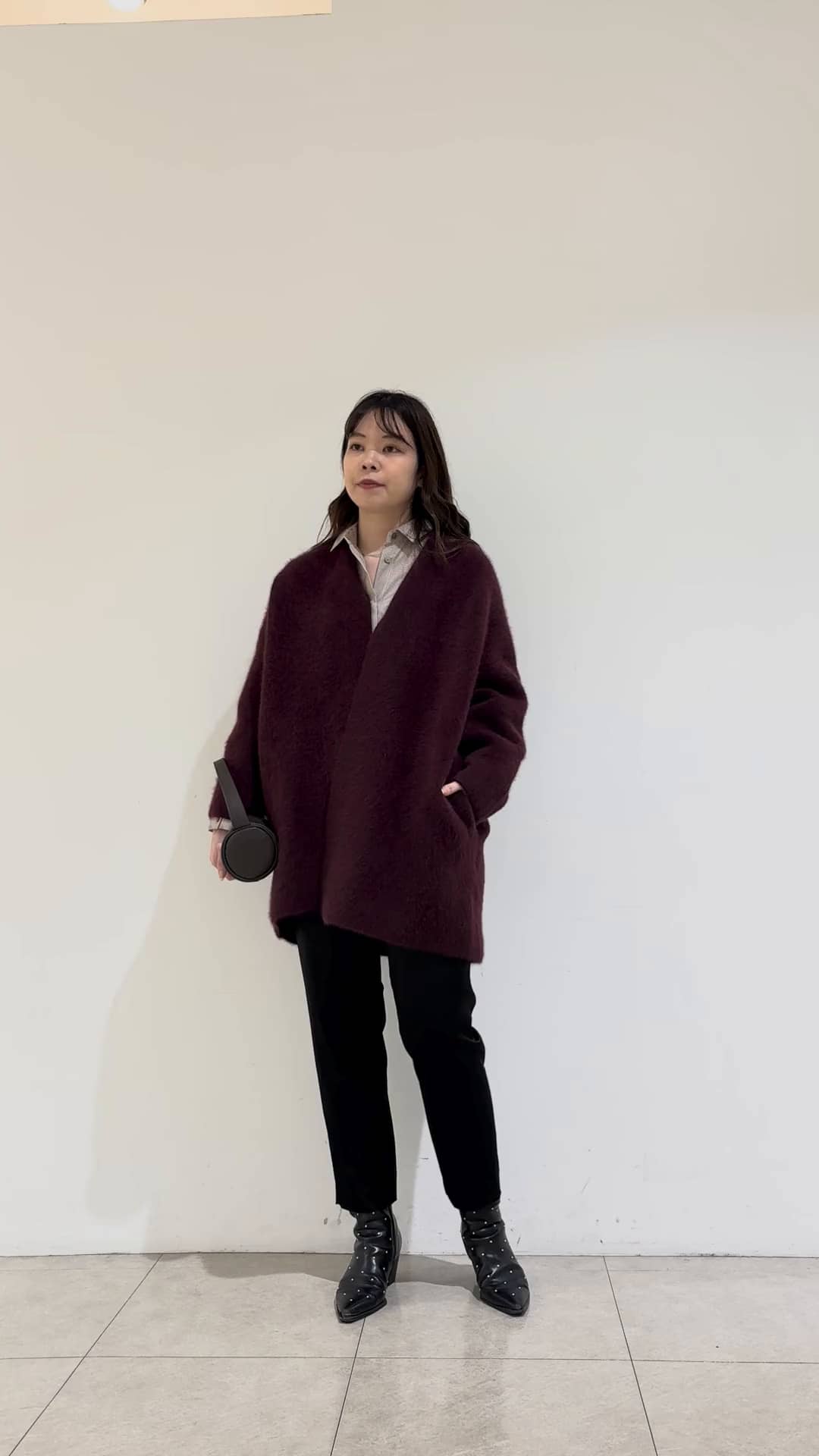 厚めの生地感で、フォークスやウールの混合素材で暖かく、軽さが特徴。さらっと羽織りやすいので冬に大活躍します!