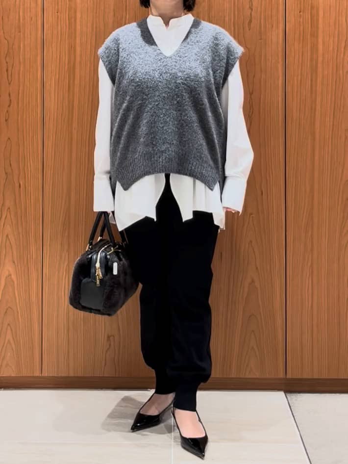 袖ありニットは室内で暑い〜でもフワフワは着たい!!という方に、ジレがオススメです♡