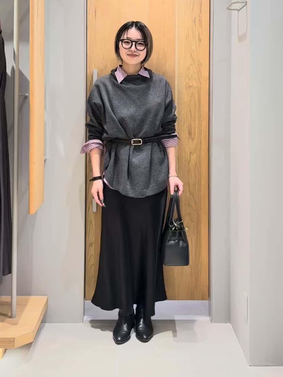 【レイヤードとベルトでトレンド感を✧︎シックコーデ】