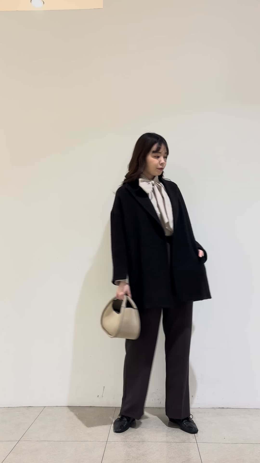取り外し可能なボウタイは結び方によって雰囲気をガラッと変えられるので一枚ではもちろん、ニットとのレイヤードやジャケット合わせなど使いやすいです。