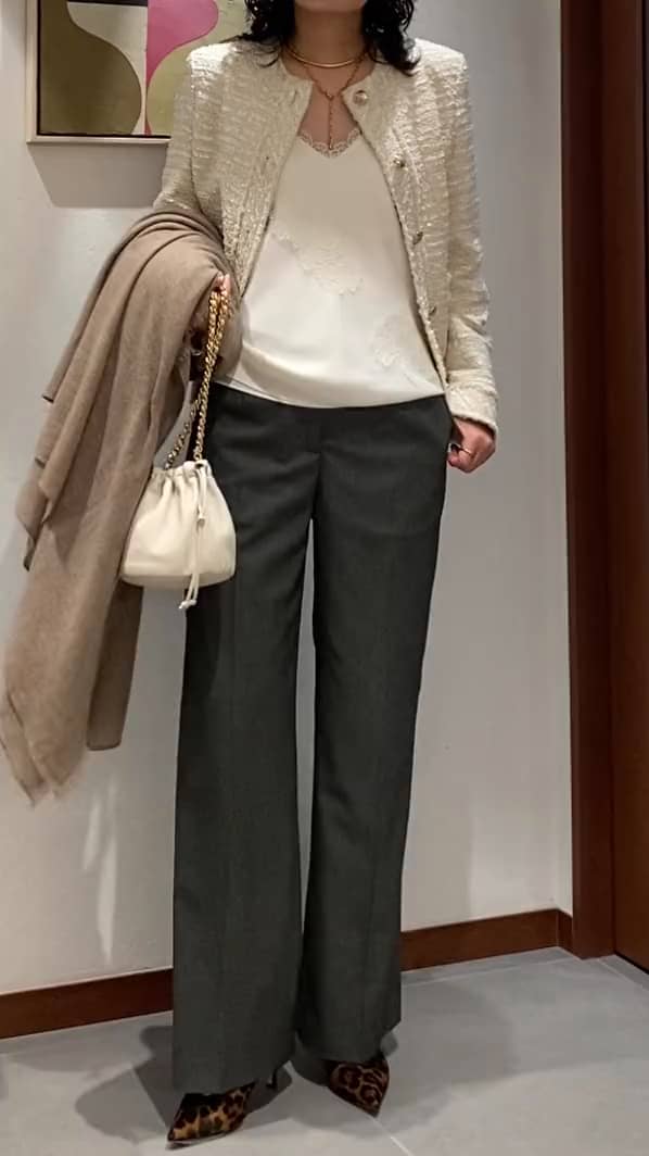 アクセサリーはゴールドで統一しホリデーシーズンにぴったりなスタイリングに☺︎
