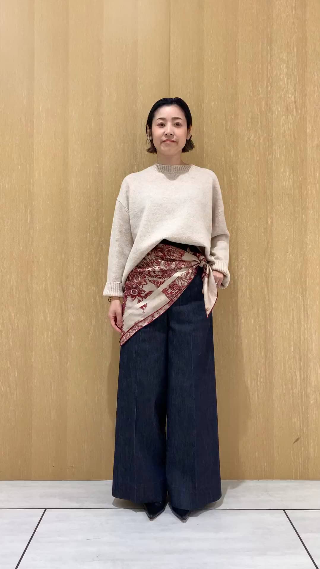オフィス向けならブラウスやジャケット。休日はニットやカジュアルトップスにスニーカー👟も素敵に着こなしていただけますよ☺️