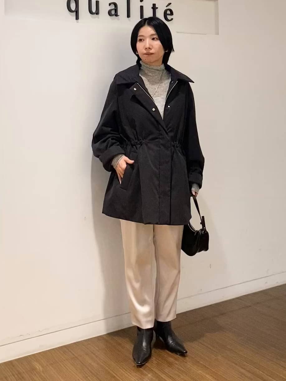 ウエストの絞りが自由自在に調節出来るので着膨れ感がなくスッキリ見せてくれて、ボトムスがワイドパンツやスカート合わせの時にバランスが取りやすく、中綿が入っているので軽くて暖かいです♡