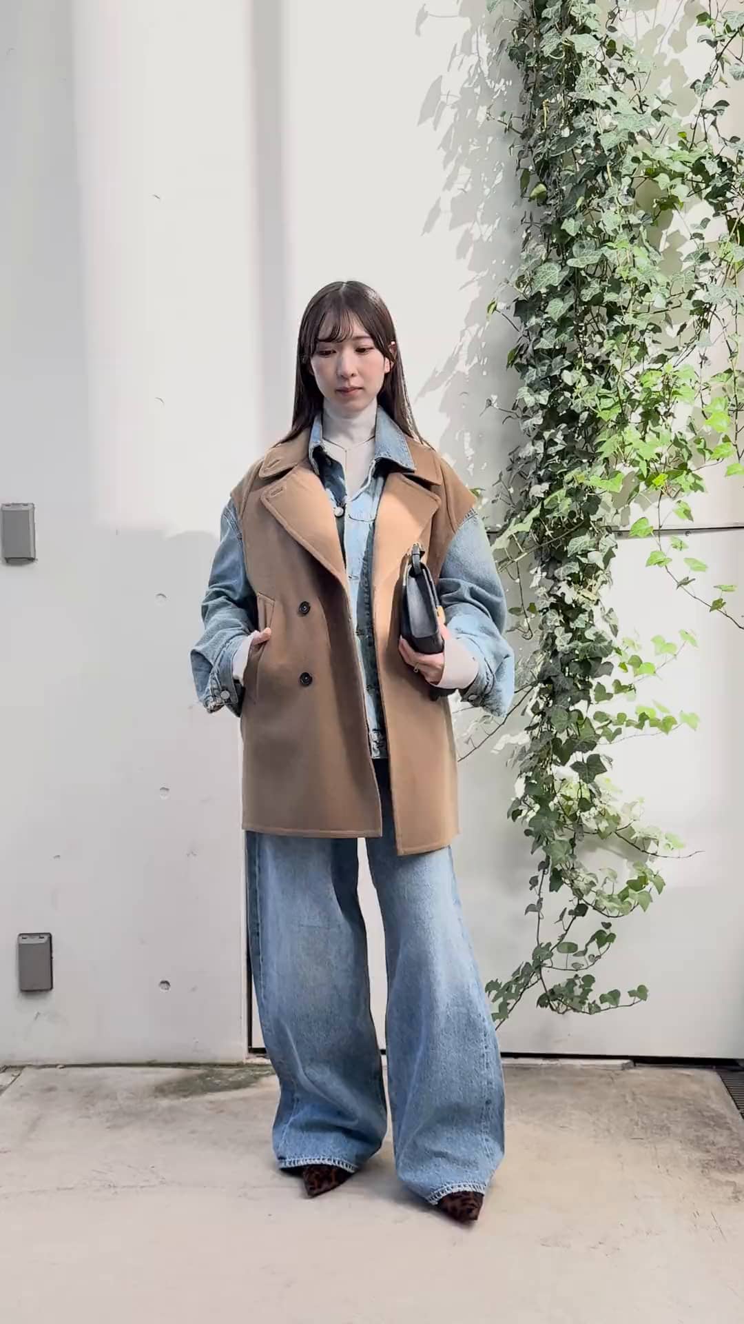 オーバーサイズのウェアを組み合わせたレイヤードコーデです。シンプルで金具が控えめな小物や華奢なジュエリーを合わせてボリューム感のバランスを整えました。