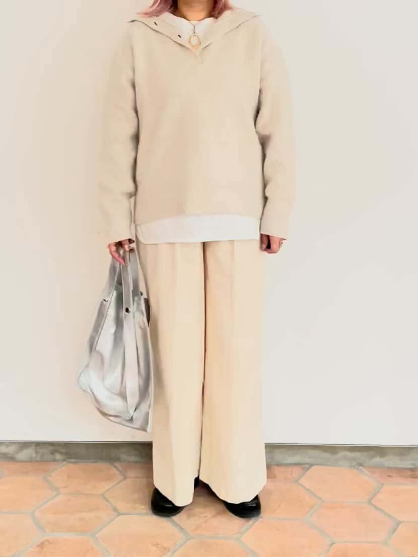 コメント:ふんわりした風合いが冬らしいニット。軽い着心地で暖かいです。カットソー合わせてカジュアルにも、首元をみせてヘルシーにも◎前後2wayだ着られるのも嬉しいポイントです♡