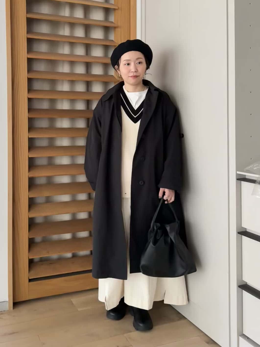 バルカラーコートはゆったりしているので肉厚なニットも着込めます。見た目よりとても軽いので着やすいコートです⭕️袖先は私には少し長いので一折しても👍