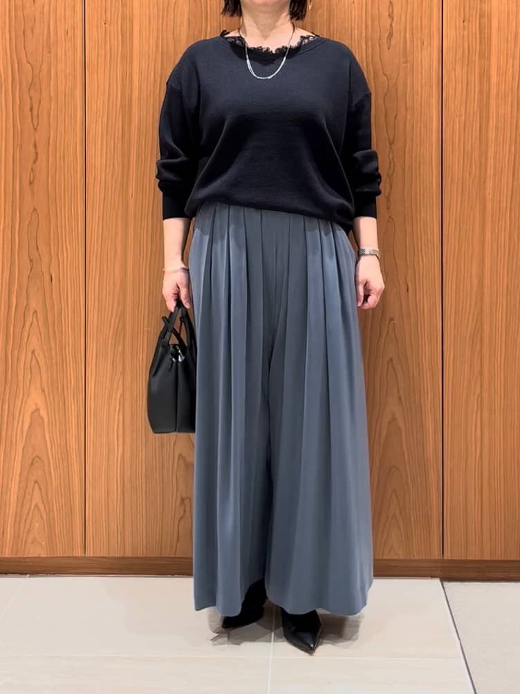 浅めのVネックとレースがデコルテをきれいに見せてくれるシンプルニットです!