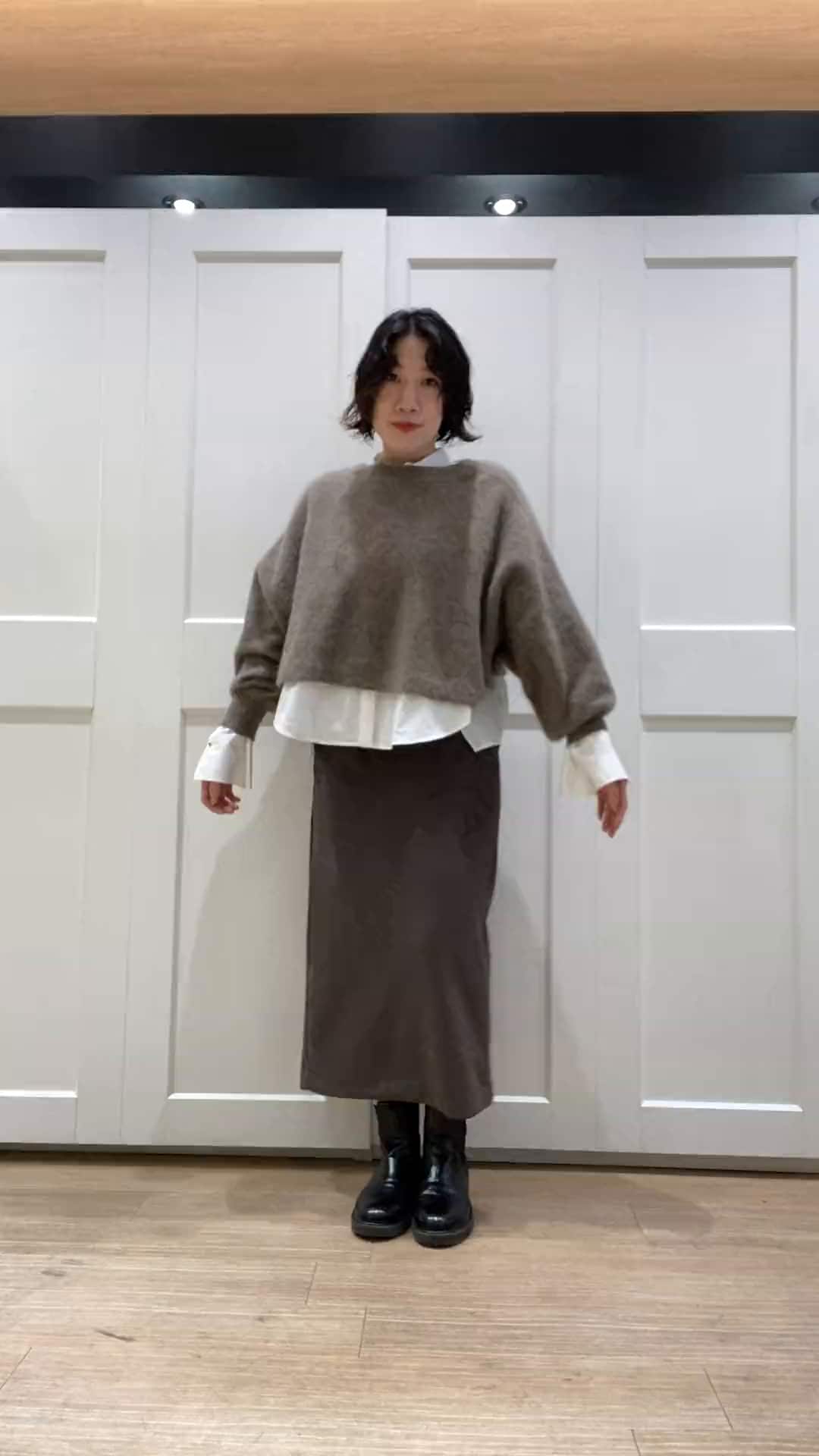 fox混のニットはショート丈で1枚で着るのも素敵ですがシャツなどレイヤードスタイルもオススメです👏🏽✨