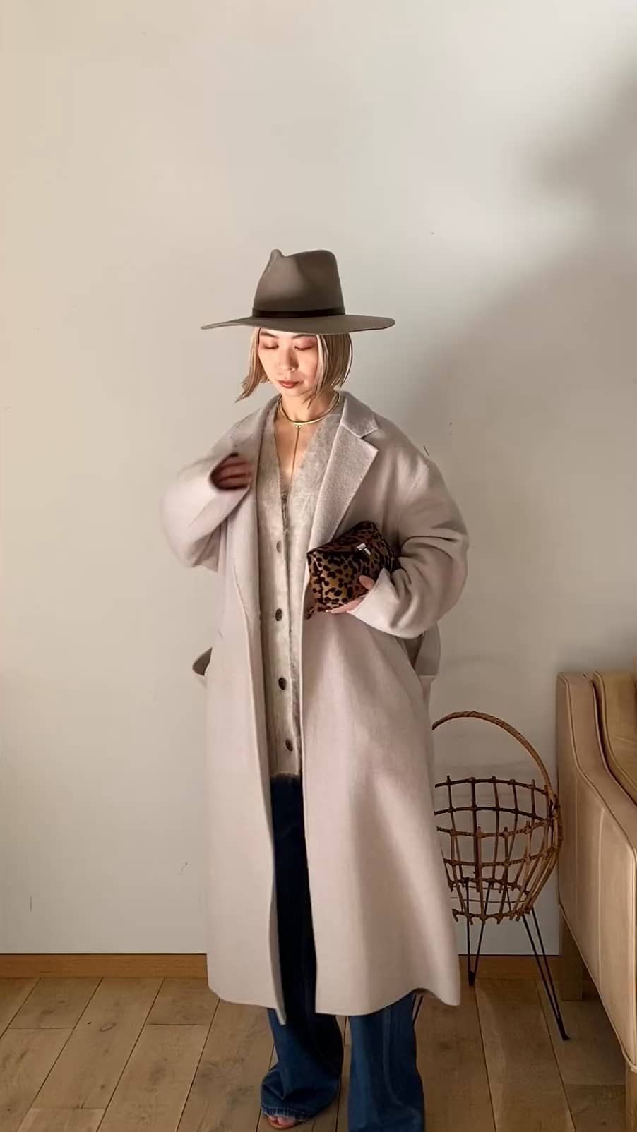 【サイズ感】普段0サイズですが、ロング丈で着たかったので1サイズを着用。わたしの身長で足首がのぞく丈。オーバーサイズなので中に厚めのニットも着られます。