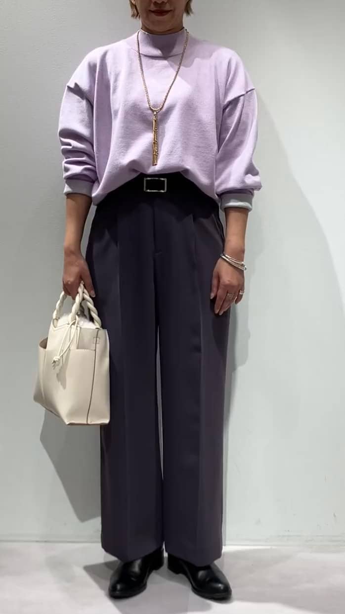 動いた時の素材の落ち感と、センタープレスがキレイ見えするので、お仕事やセミフォーマルにもオススメです