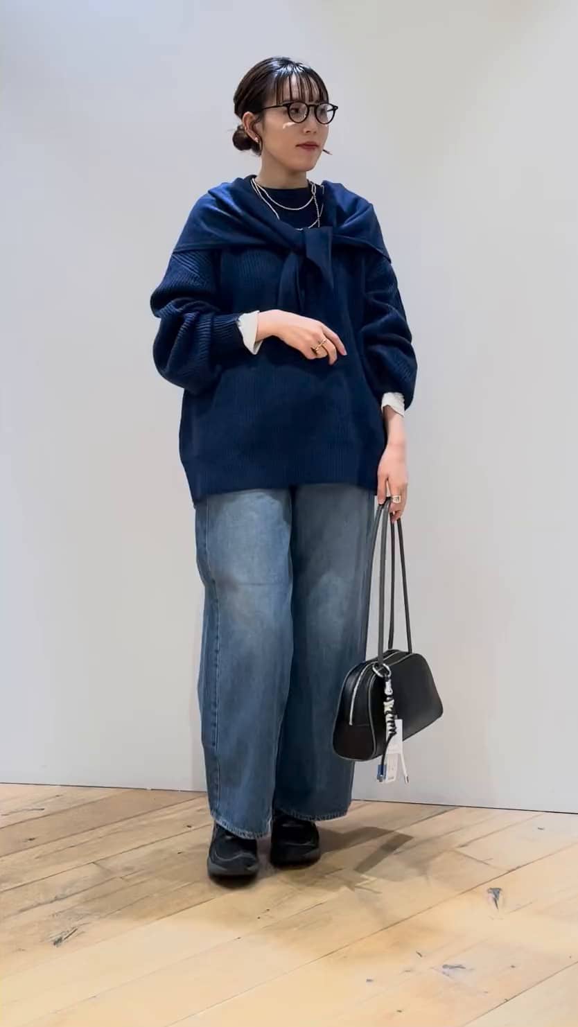 ゆったりめのたぽっとしたシルエットです。ヒップ下で安心感もあります。片畔でざっくり編みも可愛く、程よい肉感で1枚で着てもおすすめめす。