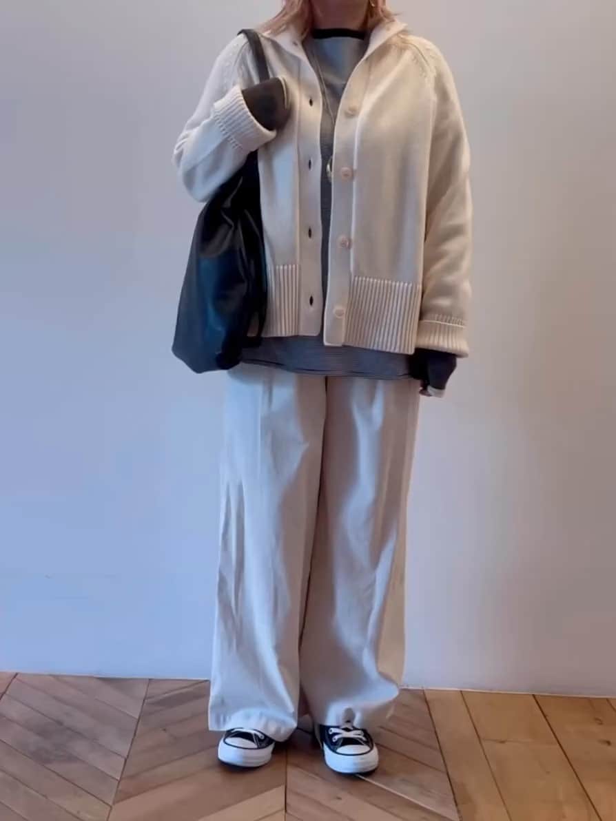 コメント: カーディガンにもプルオーバーでも着られる2wayタイプ。ハイネックが苦手な方にはカーディガンがおすすめ。袖と裾のリブが幅広なデザインもポイント◎