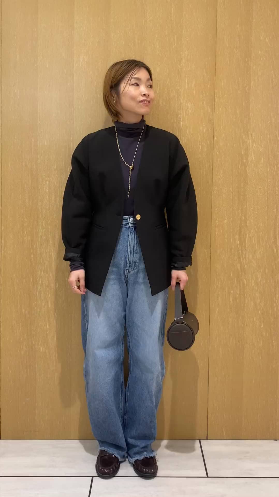 オンオフ着回せるモードジャケットになってます✨後ろのシルエットもこだわりです☺️