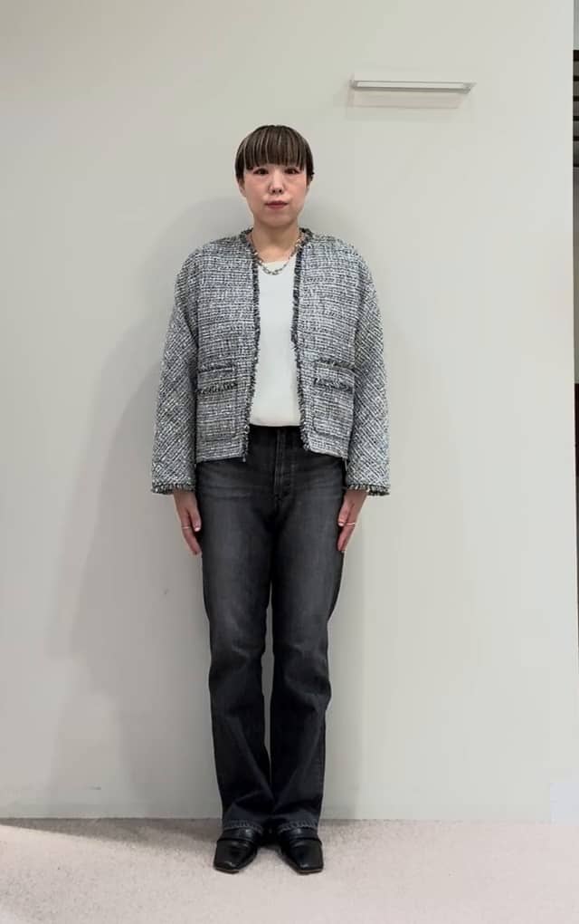 軽く光沢感のある糸を使用した、軽やかなツィードジャケットです!