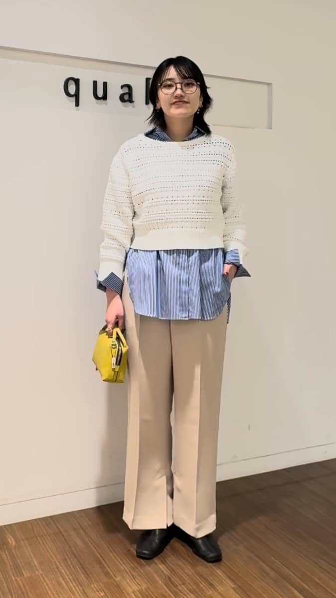 詰まりすぎない首元と、広めの袖口が甘過ぎない抜け感のあるコットン地ニットです✨