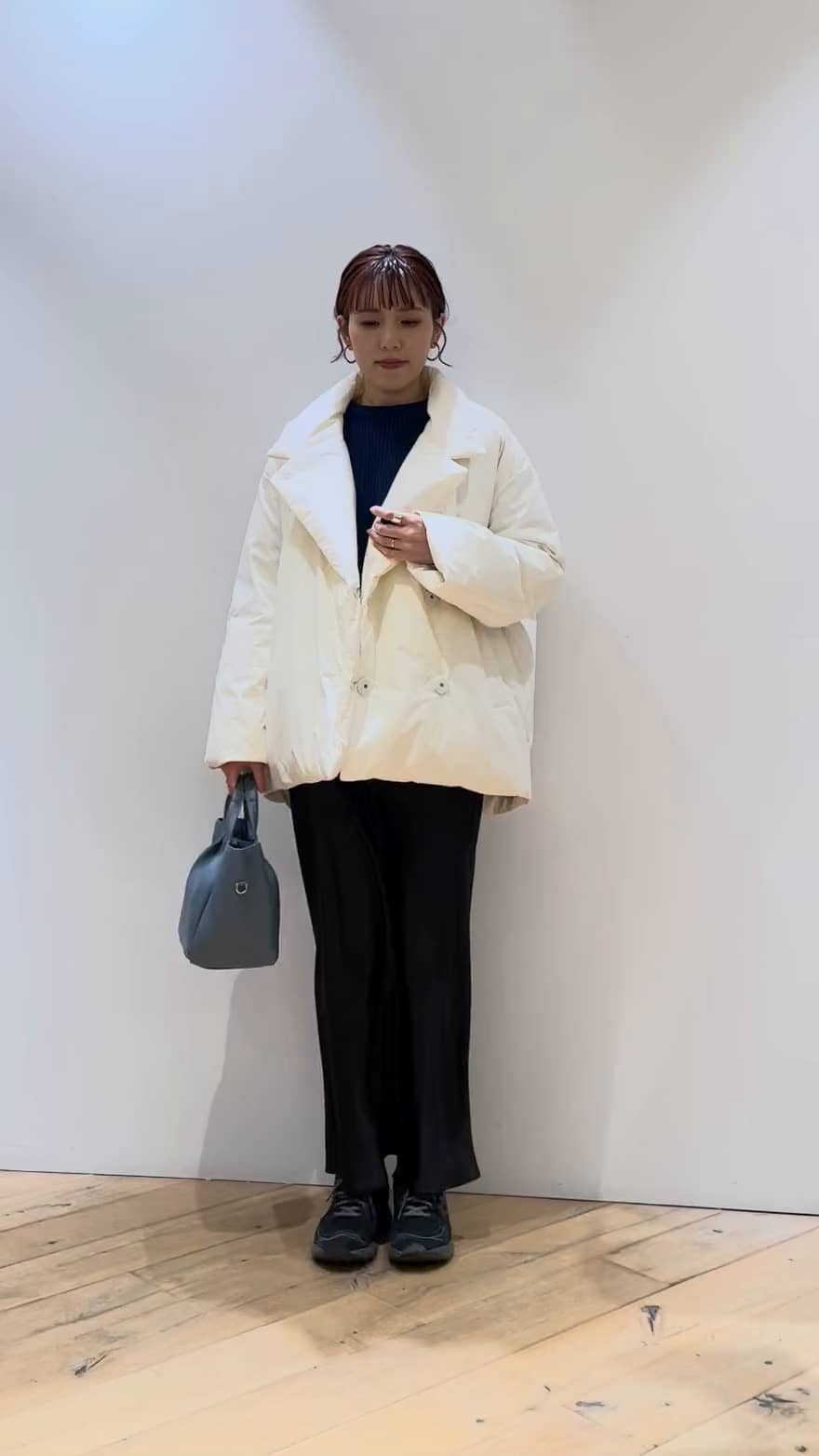 ダウン、フェザーの割合が少なく、非常に軽くて着やすいです。マットな質感のアイボリーで合わせやすく、ダウンが苦手な方にもおすすめです。