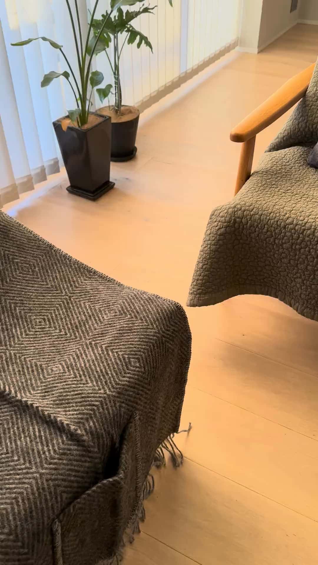 170×60cm。1人掛けソファにさらりと掛けて。大人2人が横並びになってもコンパクトな膝掛けとして使えます。