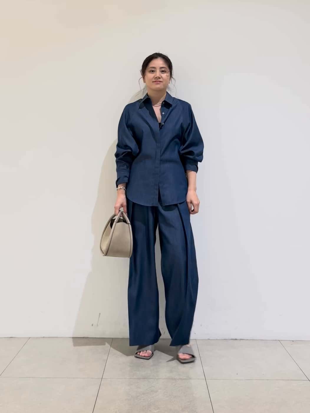 デニムライクな見え感ですが、艶感があるのでオンオフ問わず使っていただけます☺️