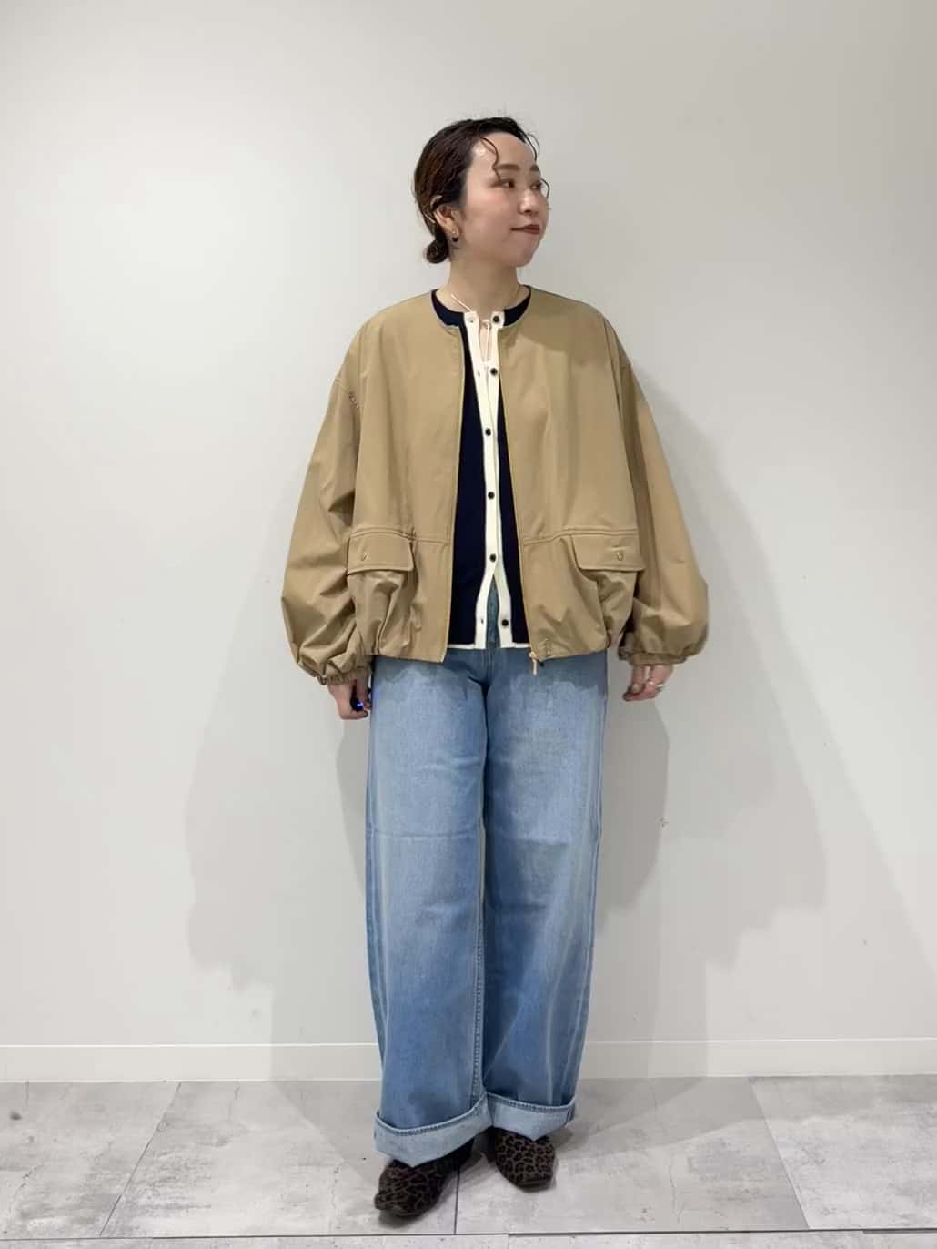 低身長の方でもダボつきすぎず、お尻が半分くらい隠れる丈感なので安心感があります✨ノーカラーのシンプルなデザインですが綺麗めに着られるのが嬉しいポイントです!