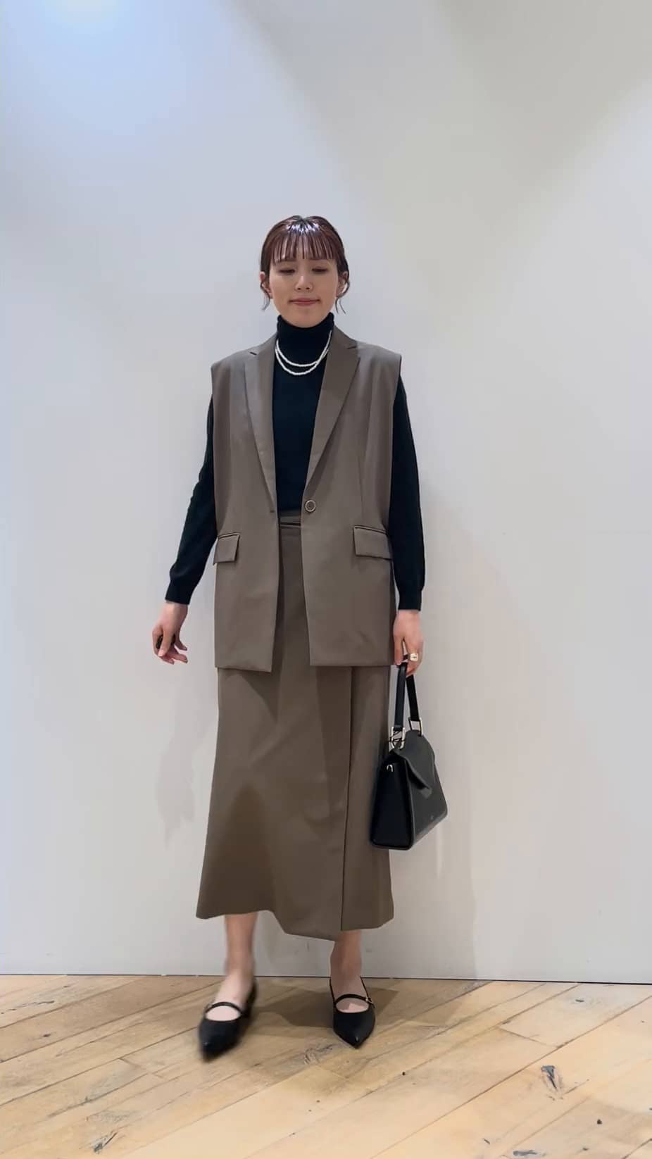 巻きスカート仕様です。重なる部分の布を多めにとっているので、足が見えにくくなっています。薄いカーキのようなダークベージュで、洗練された大人のスタイルに!
