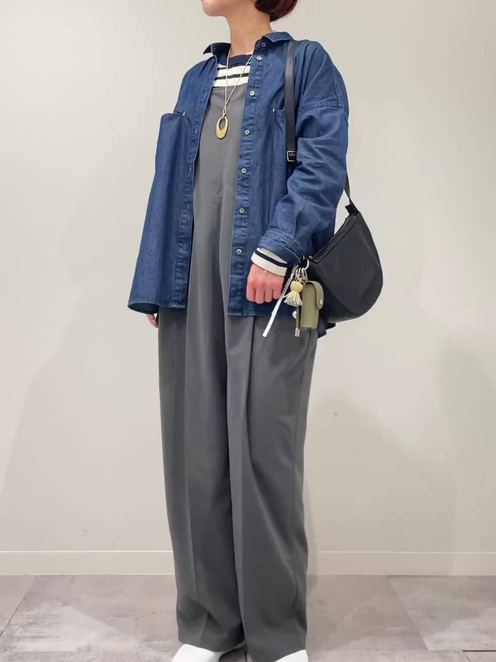 背中のタックでふわっとヒップ周りは隠れるので、ボタンを留めても、外して羽織りもおすすめです◎