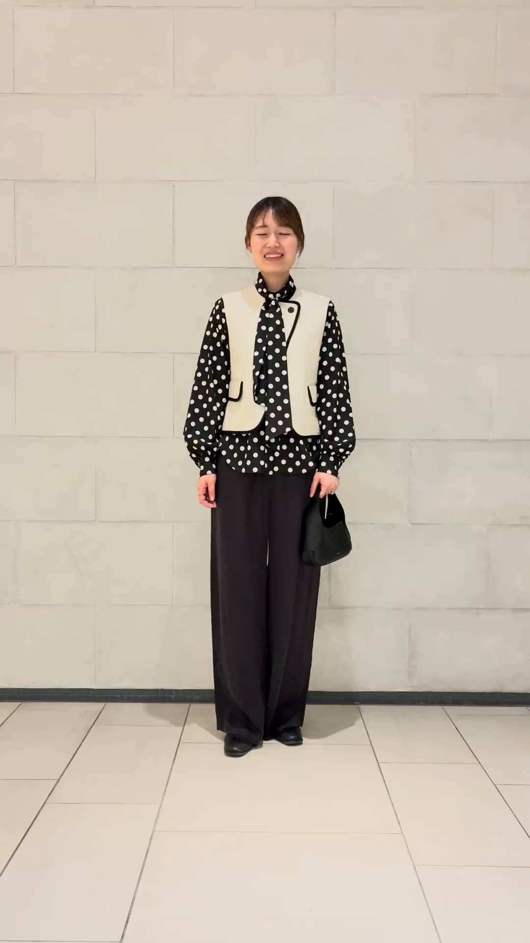 デザイン性のあるブラウスにジレを重ね、