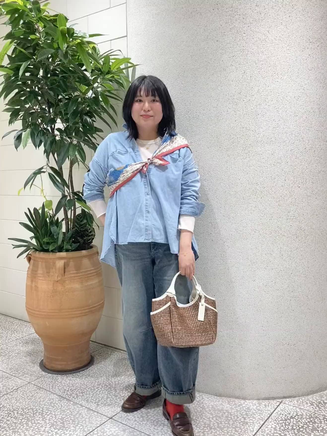 大きめサイズでお洋服のように使えるサイズです。デニムとの組み合わせがお気に入り。