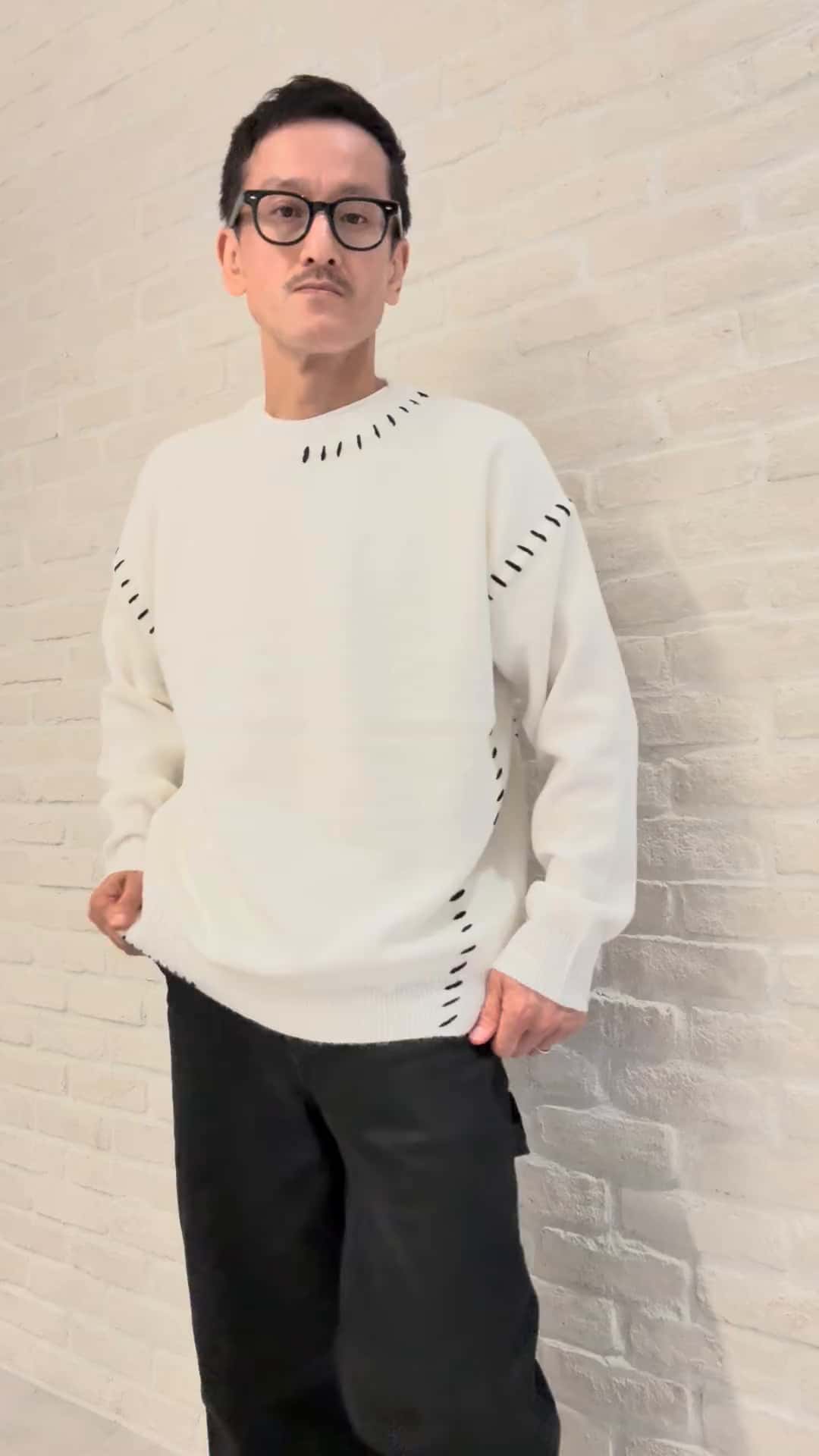 一枚でサマになるのが素敵なハンドステッチニットです!