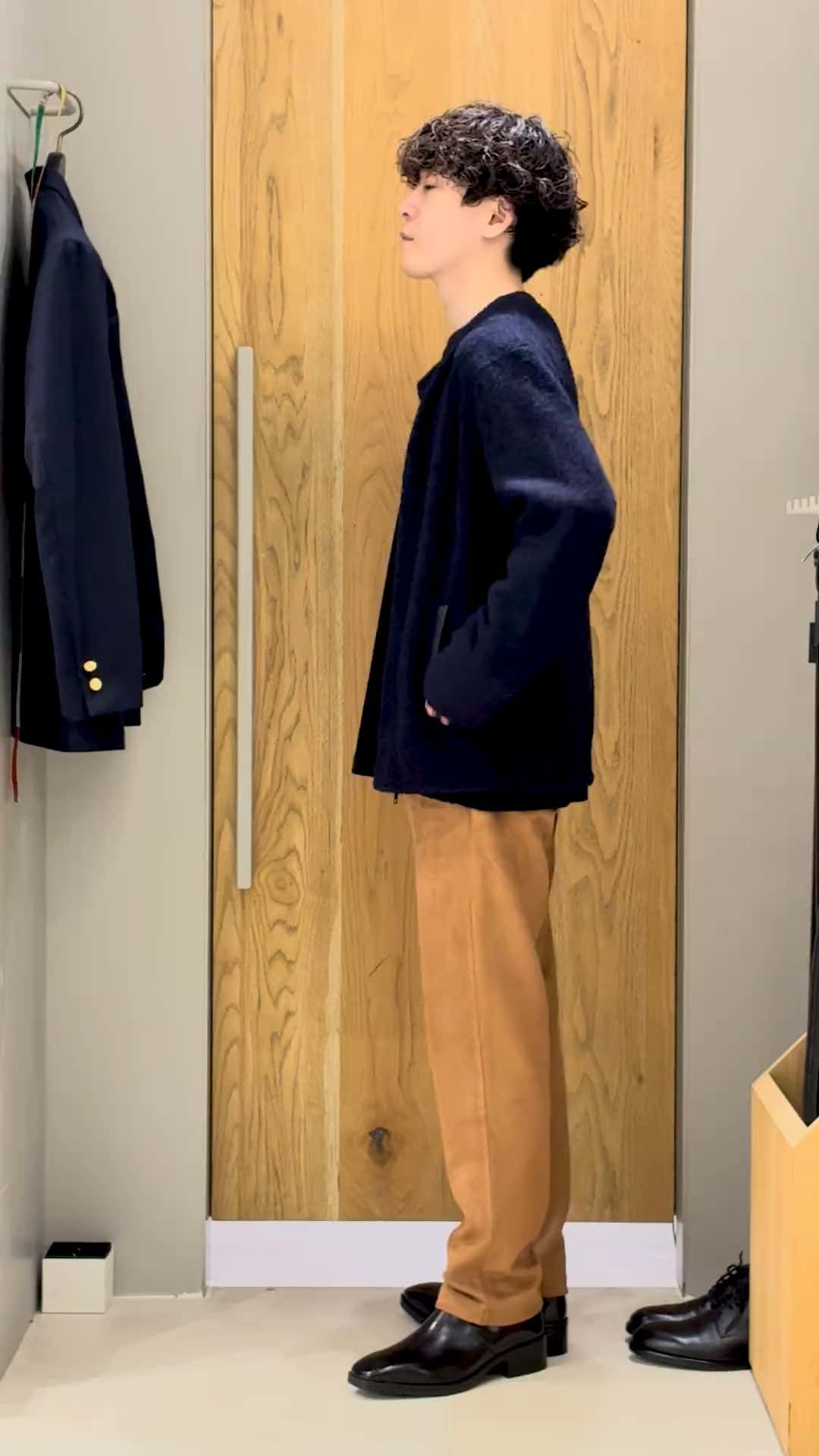 ▽サイズ感:まさにジャスト。ですがニット素材なので適度なストレッチと落ち感があって窮屈さはありません。今っぽいライダースだと思います!