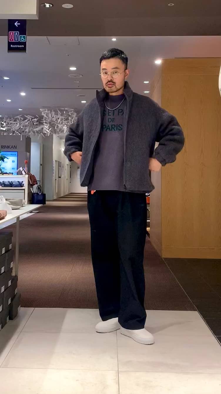 全体的にゆったりとしたコンフォートなサイジングです。丈は長すぎずスッキリとした見え方になります。