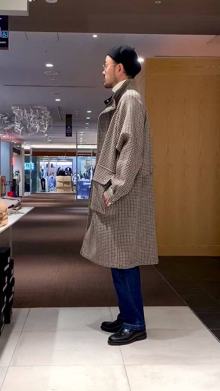 スタンドカラーコート。